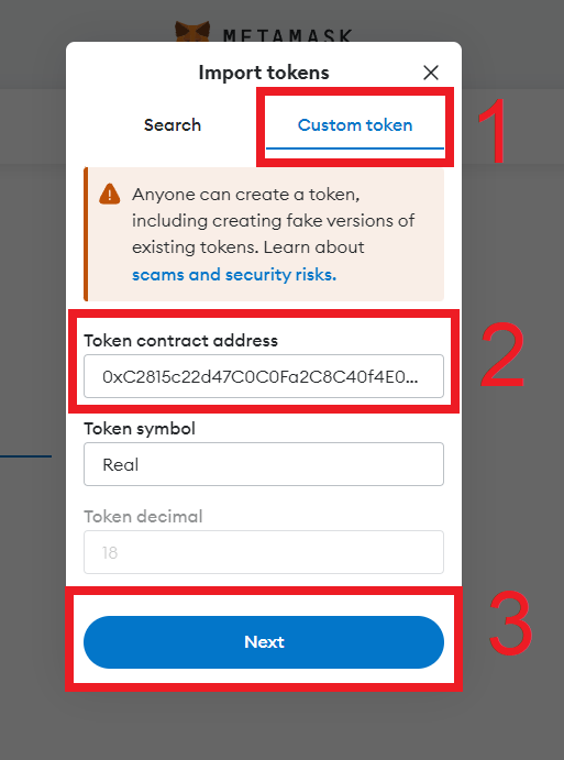 Step 1: Get MetamaskIn Google Chrome, go to metamask.io and download metamask-extension: Step 2: Get your walletIf you allready have a wallet: Import it. If you don't have a wallet: Create one. (If you create a new wallet, make sure to allways remember your recovery phrase!! Without this, you won't be able to enter your wallet again!!!) Step 3: Set your network to BNBAfter you got into your wallet, on the Topright, go to settings: In "settings", go to networks and click on "Add a network": Search for "BNB Chain" and click on "Add": Step 4: Import Reality CoinMake sure on the topleft your network is set to BNB-Chain and click on "Import tokens": In here, select "Custom token" and past the Reality Coin contract adress: 0xC2815c22d47C0C0Fa2C8C40f4E0bC278b14b2755 Then, click on "Next": You should now see the coin in your wallet. Step 5: Get BNBYou now should in some way get some BNB's in your wallet to pay with. There is millions of ways to do this, depending on lots off stuff, like your country. Google it, and you'll find one. Make sure you send the BNB you buy to your Metamask-wallet, your wallet adress is shown below. Step 6: Send BNB to Reality CoinOnce you received your BNB, in your wallet click on "send". In here, fill in the Reality Coin Pre-Presale wallet adress: 0x26bCe5d76Ccaa53Caf4717dA7cD7faa7F95a313a and set the ammount of BNB you want to send. Make sure this number is smaller then 0.5 BNB. After this, click on "Continue" Confirm again: Step 7: Share your transaction hash with the Reality Coin Team to receive your Reality CoinIn your wallet, go to "Activity" and click on the transaction you just made. Copy the transaction-id, and share it in our telegram group. With this id, we can see which wallet send us a certain ammount of BNB, so we can send you back your Reality Coin. Without this last step, you won't receive your coins! If you made it to this point, congratulations! You soon will find the coins in your wallet. |
